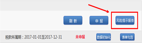 2、完成《中華人民共和國企業(yè)所得稅年度納稅申報表》(A類,2017年版)的填寫后,您可以點擊“風(fēng)險提示服務(wù)”按鈕。
