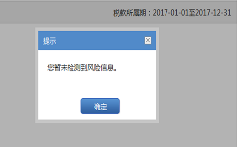 5、 點擊*三步提示框中的“確定”按鈕后如沒有出現(xiàn)申報強(qiáng)制校驗信息或忽略提示校驗,系統(tǒng)即刻對您提交的申報表數(shù)據(jù)和相關(guān)信息進(jìn)行風(fēng)險掃描,您在較短的時間內(nèi)(通常不超過30秒)即可接收到風(fēng)險提示信息。