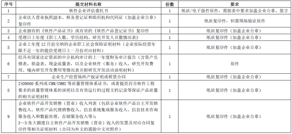 4、軟件企業(yè)評(píng)估所需材料匯總:
